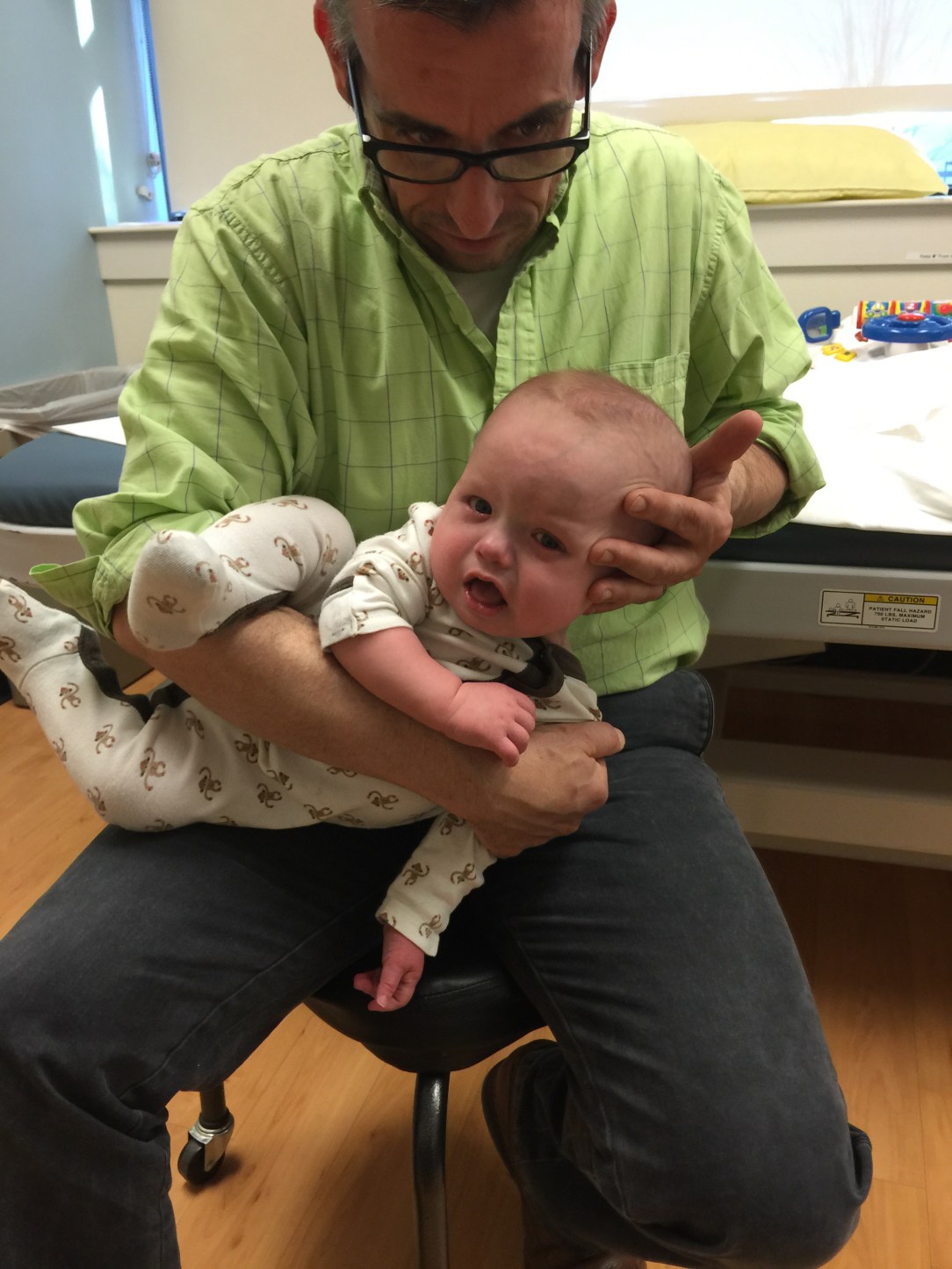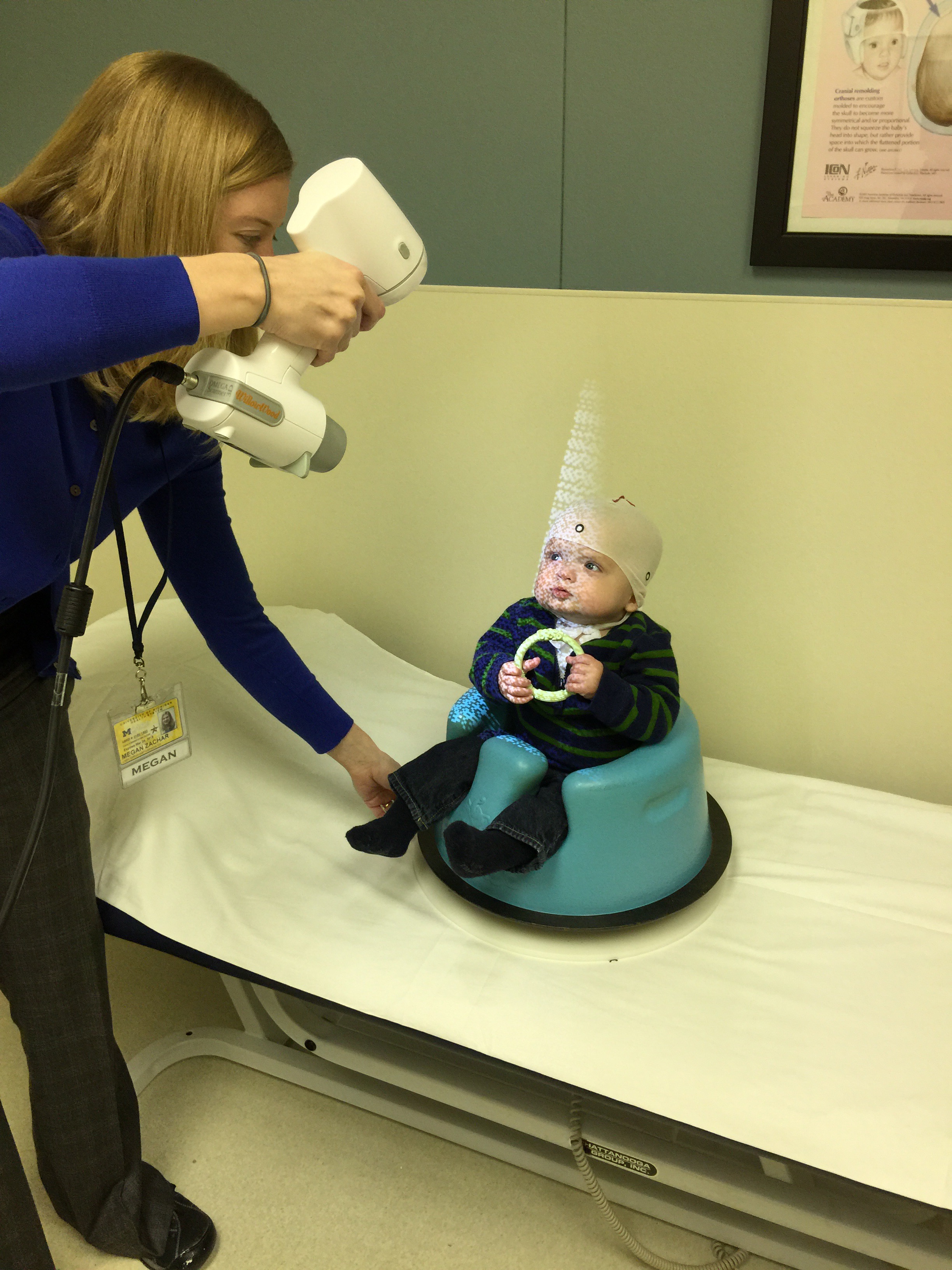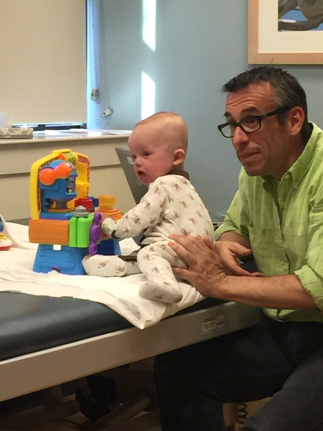 We were called back, weighed in, and taken into a room to wait for Dr. Neil, Camden’s amazing Neurologist. Dr. Neil came in, introduced herself and started her extremely thorough examination. The exam included observation, discussion, and a physical examination. Upon the conclusion of her exam she stated that he had Positional Plagiocephaly (flat head), Delayed Visual Maturation, and Reflux. What was a huge relief to us at the time was that she didn’t think his muscle tone was a concern. She referred us to Physical Therapy and Ophthalmology to be evaluated, supported the Early On evaluation and said I’ll see you back in 3-4 months.