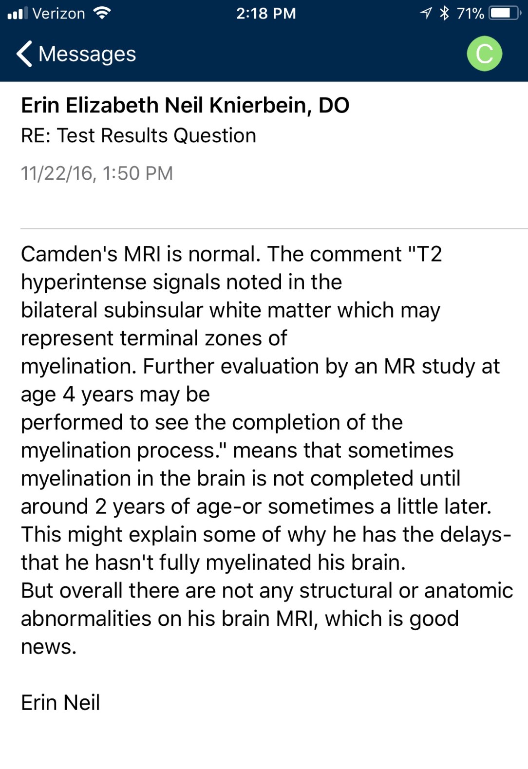 We were relieved that our perfect little guys brain had typical structure with no signs of damage. Now, where do we go from here? We just had to wait and see…