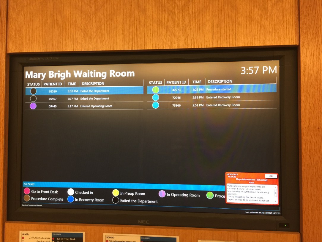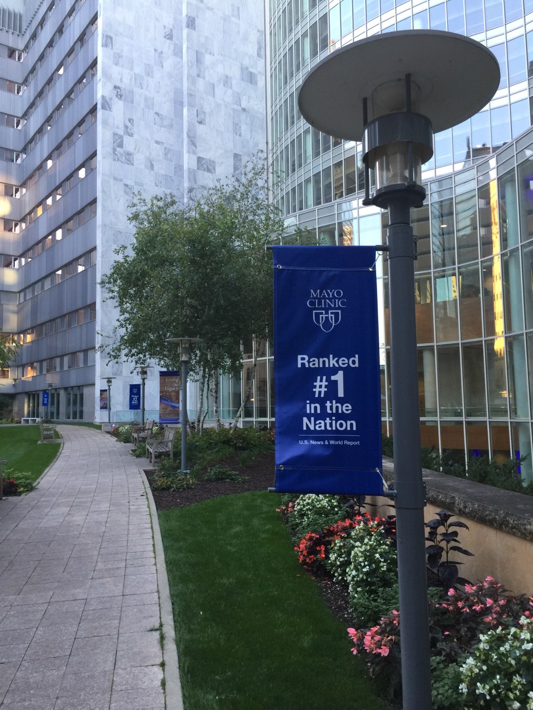 We landed in Minneapolis after an uneventful flight. We picked up the rental car and drove an hour down to Rochester, MN. We checked into our hotel, got set up and went to dinner. While we were walking to dinner that night there were thousands of lady bugs everywhere, on the buildings, cars, and us. 🙂 I couldn’t help but to think that this was a sign of luck. After dinner we walked through town to a grocery store to pick up some simply groceries for the week ahead. The downtown area of Rochester is primarily made up of Mayo buildings. We got back to our hotel that night and settled in and went to sleep, we had a big day ahead of us the following day.